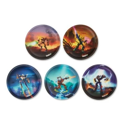 Fünf Superhelden für deine Schultasche zum Sammeln und Tauschen. Gestalte immer wieder neu.
