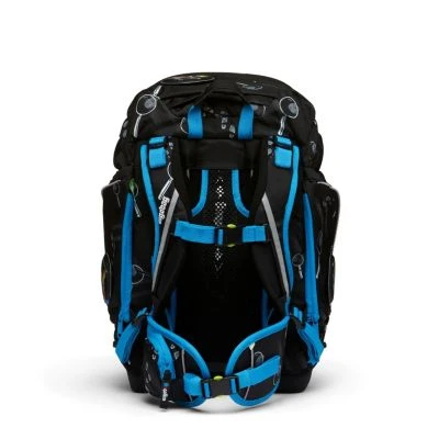 Der Rucksack ist in ein geräumiges Hauptfach, einer Reißverschlusstasche an der Vorderseite, sowie Seitentaschen aufgeteilt und bietet somit genügend Stauraum für alle Schulutensilien. An den Seitentaschen befinden sich zusätzliche Reißverschlüsse um Zip-Sets anzubringen. Ausgestattet ist der Pack mit einem extra Reißverschlussfach am Beckengurt und einer kleinen Tasche im Deckel.