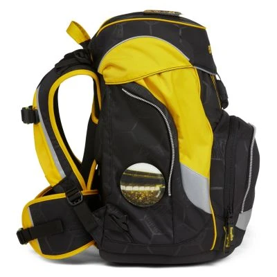 Der Ergobag Pack Schulranzen ab der 1. Klasse ergonomisch, individuell, nachhaltig und sichtbar. Der Pack von ergobag kombiniert die klassische Form traditioneller Schulranzen mit dem Tragesystem des beliebten ergobag-Schulrucksacks. Dank breiter Beckenflossen wird das Gewicht von den Schultern auf den stabilen Beckenbereich verlagert. Ergobag benutzt für die Herstellung des Ranzens recycelte PET-Flaschen um die Umwelt zu schützen, für diesen Ranzen wurden mehrere Flaschen verarbeitet. An den Pack Schulranzen können die passenden Sicherheitssets, für noch mehr Sicherheit im Straßenverkehr angebracht werden. Er hat einen standfesten Boden. Der Ranzen unterstützt die Bewegungsfreiheit der kleinen Träger, denn er sitzt durch Becken- und Brustgurt angenehm nah am Rücken, sogar beim Herumtoben.