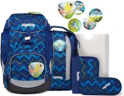Der Ergobag Pack Schulranzen ab der 1. Klasse ergonomisch, individuell, nachhaltig und sichtbar. Der Pack von ergobag kombiniert die klassische Form traditioneller Schulranzen mit dem Tragesystem des beliebten ergobag-Schulrucksacks. Dank breiter Beckenflossen wird das Gewicht von den Schultern auf den stabilen Beckenbereich verlagert. Die Kletties bieten, wie bei ergobag beliebt, individuell den cubo zu gestalten. Ergobag benutzt für die Herstellung des Ranzens recycelte PET-Flaschen um die Umwelt zu schützen, für diesen Ranzen wurden mehrere Flaschen verarbeitet. An den cubo Schulranzen können die passenden Sicherheitsset, für noch mehr Sicherheit im Straßenverkehr. Er hat einen standfesten Boden. Bewegung und Haltung beeinflussen unser Körperbewusstsein und können die Persönlichkeitsentwicklung fördern. Studien zeigen, dass Kinder, die sich viel bewegen, unabhängiger, kontaktfreudiger und motivierter sind. Der Ranzen unterstützt die Bewegungsfreiheit der kleinen Träger, denn er sitzt durch Becken- und Brustgurt angenehm nah am Rücken, sogar beim Herumtoben. Set bestehend aus: – Schulranzen – Sportrucksack – Schlampermäppchen – Federmäppchen – Kletties 1 – Heftbox. Schulranzen Größe: 25cm x 20cm x 40cm Gewicht: ca. 1.100 g Volumen: ca. 20 Liter Beckengurt mit Beckenflossen höhenverstellbarer Brustgurt atmungsaktives Rückenpolster ( Rücken wächst mit) Mit ergobag Kletties lässt sich der Cubo individuell gestalten er hat seitliche Reißverschlussfächer ein Fach im Deckel individuell einstellbare Innenaufteilung Die ergobag Stoffe aus 100% recycelten PET Flaschen hergestellt. Diese Produktionsweise verringert die Umweltbelastungen enorm. Im Vergleich werden in der Herstellung die Abwassermenge um 20%, der Energieverbrauch um 50% und die Schadstoffemissionen um 60% gesenkt 2. Sportrucksack Er kann durch Schnappverschlüsse am Schulranzen fest fixiert oder separat getragen werden. 3. Schlamperrolle 4. Federmäppchen gefüllt 22-tlg. 5. Kletties