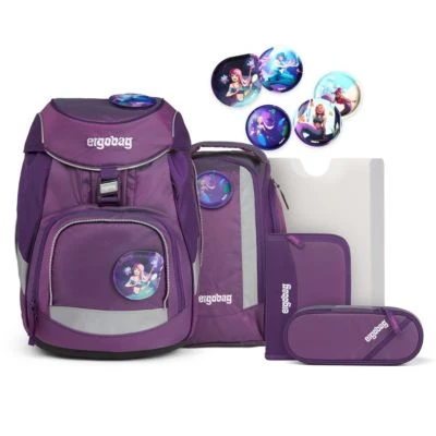 Der Ergobag Pack Schulranzen ab der 1. Klasse ergonomisch, individuell, nachhaltig und sichtbar. Der Pack von ergobag kombiniert die klassische Form traditioneller Schulranzen mit dem Tragesystem des beliebten ergobag-Schulrucksacks. Dank breiter Beckenflossen wird das Gewicht von den Schultern auf den stabilen Beckenbereich verlagert. Die Kletties bieten, wie bei ergobag beliebt, individuell den cubo zu gestalten. Ergobag benutzt für die Herstellung des Ranzens recycelte PET-Flaschen um die Umwelt zu schützen, für diesen Ranzen wurden mehrere Flaschen verarbeitet. An den cubo Schulranzen können die passenden Sicherheitsset, für noch mehr Sicherheit im Straßenverkehr. Er hat einen standfesten Boden. Bewegung und Haltung beeinflussen unser Körperbewusstsein und können die Persönlichkeitsentwicklung fördern. Studien zeigen, dass Kinder, die sich viel bewegen, unabhängiger, kontaktfreudiger und motivierter sind. Der Ranzen unterstützt die Bewegungsfreiheit der kleinen Träger, denn er sitzt durch Becken- und Brustgurt angenehm nah am Rücken, sogar beim Herumtoben. Set bestehend aus: – Schulranzen – Sportrucksack – Schlampermäppchen – Federmäppchen – Kletties 1 – Heftbox. Schulranzen Größe: 25cm x 20cm x 40cm Gewicht: ca. 1.100 g Volumen: ca. 20 Liter Beckengurt mit Beckenflossen höhenverstellbarer Brustgurt atmungsaktives Rückenpolster ( Rücken wächst mit) Mit ergobag Kletties lässt sich der Cubo individuell gestalten er hat seitliche Reißverschlussfächer ein Fach im Deckel individuell einstellbare Innenaufteilung Die ergobag Stoffe aus 100% recycelten PET Flaschen hergestellt. Diese Produktionsweise verringert die Umweltbelastungen enorm. Im Vergleich werden in der Herstellung die Abwassermenge um 20%, der Energieverbrauch um 50% und die Schadstoffemissionen um 60% gesenkt 2. Sportrucksack Er kann durch Schnappverschlüsse am Schulranzen fest fixiert oder separat getragen werden. 3. Schlamperrolle 4. Federmäppchen gefüllt 22-tlg. 5. Kletties